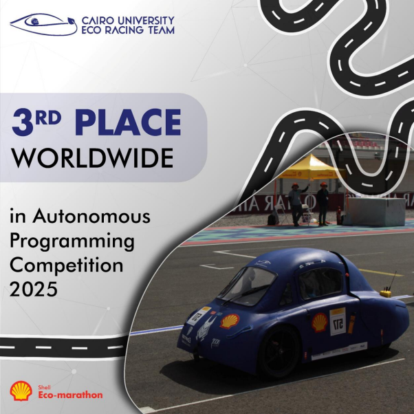 Cairo University Eco-Racing Team is beyond proud and grateful to announce a remarkable achievement: securing 3rd Place Globally in the Shell Eco-Marathon Autonomous Programming Competition, one of the world’s most prestigious and competitive challenges in the field of autonomous vehicle programming. This recognition marks not only a victory for our team but also a milestone for Egyptian engineering talent competing on an international stage. Over the past months, our team invested countless hours of work, research, and rigorous testing to deliver a project that demonstrates technical excellence, innovative problem-solving, and strong teamwork.